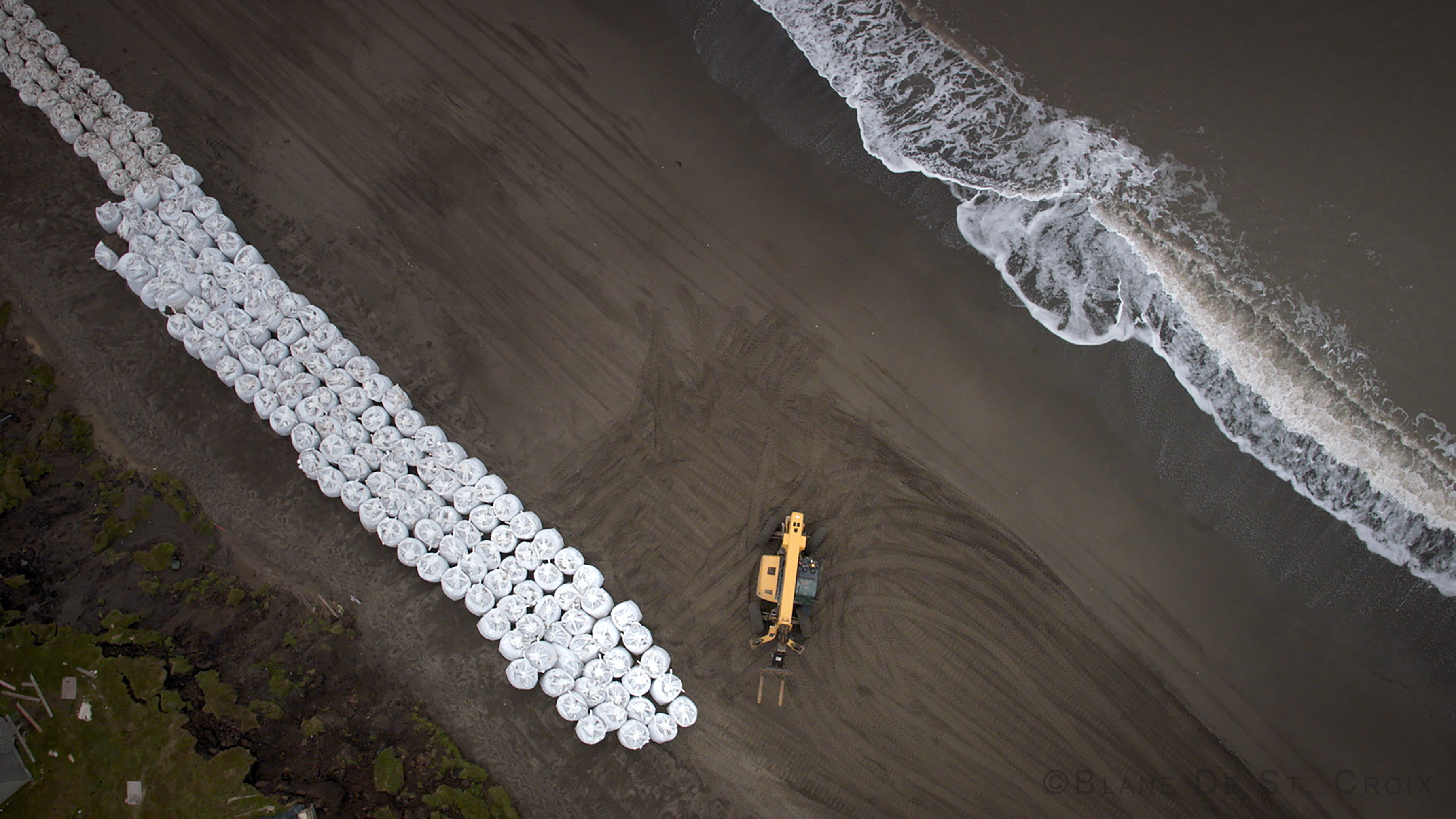 Installing Superbags of gravel to save the Utqiaġvik community from increasing climate created Arctic storms, AK.