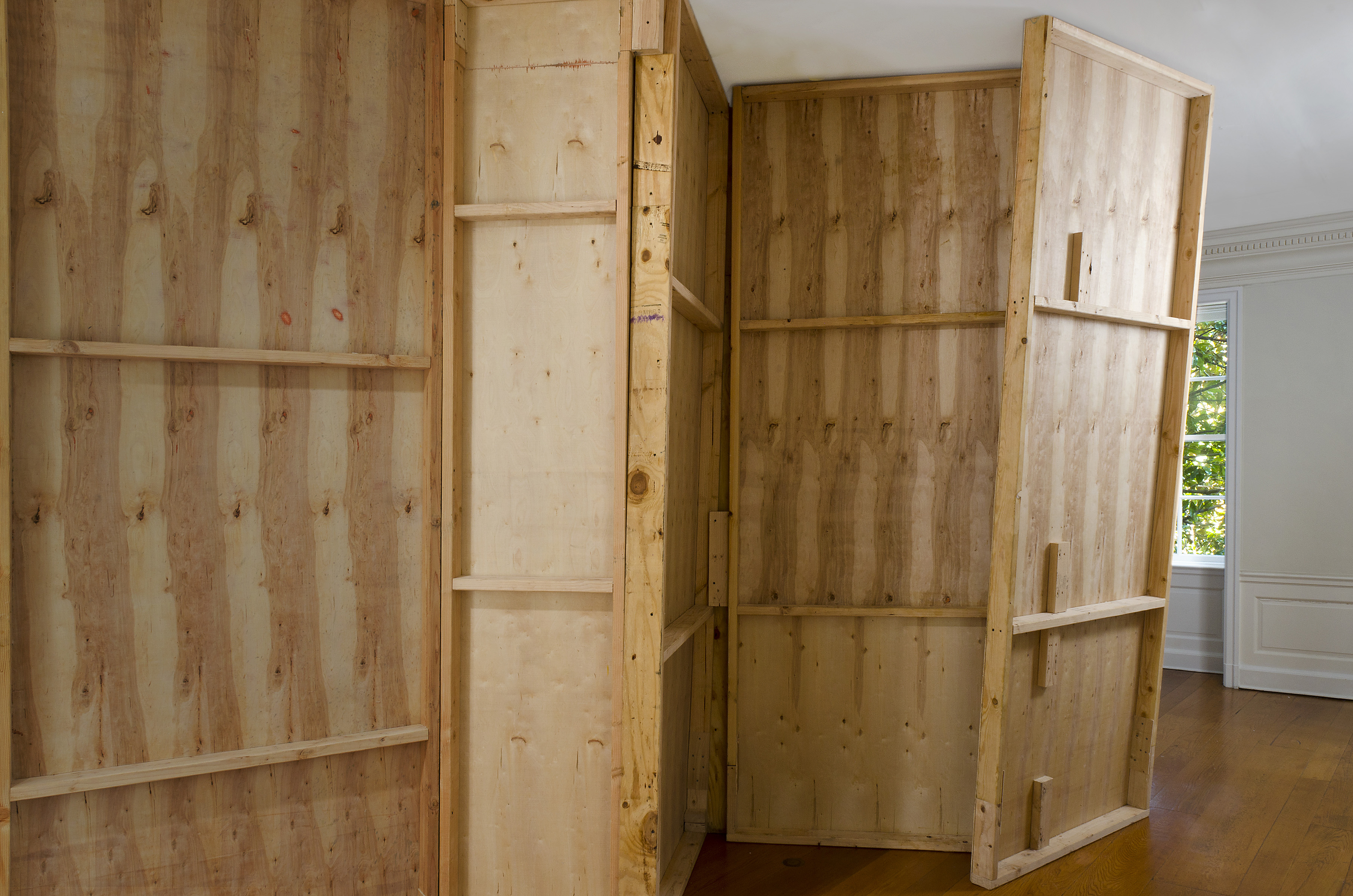 2012, wood, plywood, foam, plastic, paint, branches, dirt, and other natural materials, 16′ × 11′ × 8′
