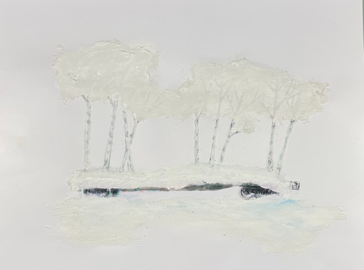 2020, Ink, paint, flocking and collage