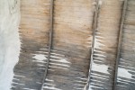 Depicted are two distinct sides dividing the gallery space in half and behaving as a sort of border, one side human, one side the natural world. The natural or glacier side of the sculpture depicts an interpretation of Arctic dead ice and is made through an elaborate process of painting, layering and sanding a variety of ecologically friendlier and recycled materials. The man-made or vessel side of the sculpture serves as a fragmented ghostly artifact of the Arctic—both sides negatively affecting the other in humankind’s endless attempts to conquer, but certainly a battle with nature prevailing in the end.