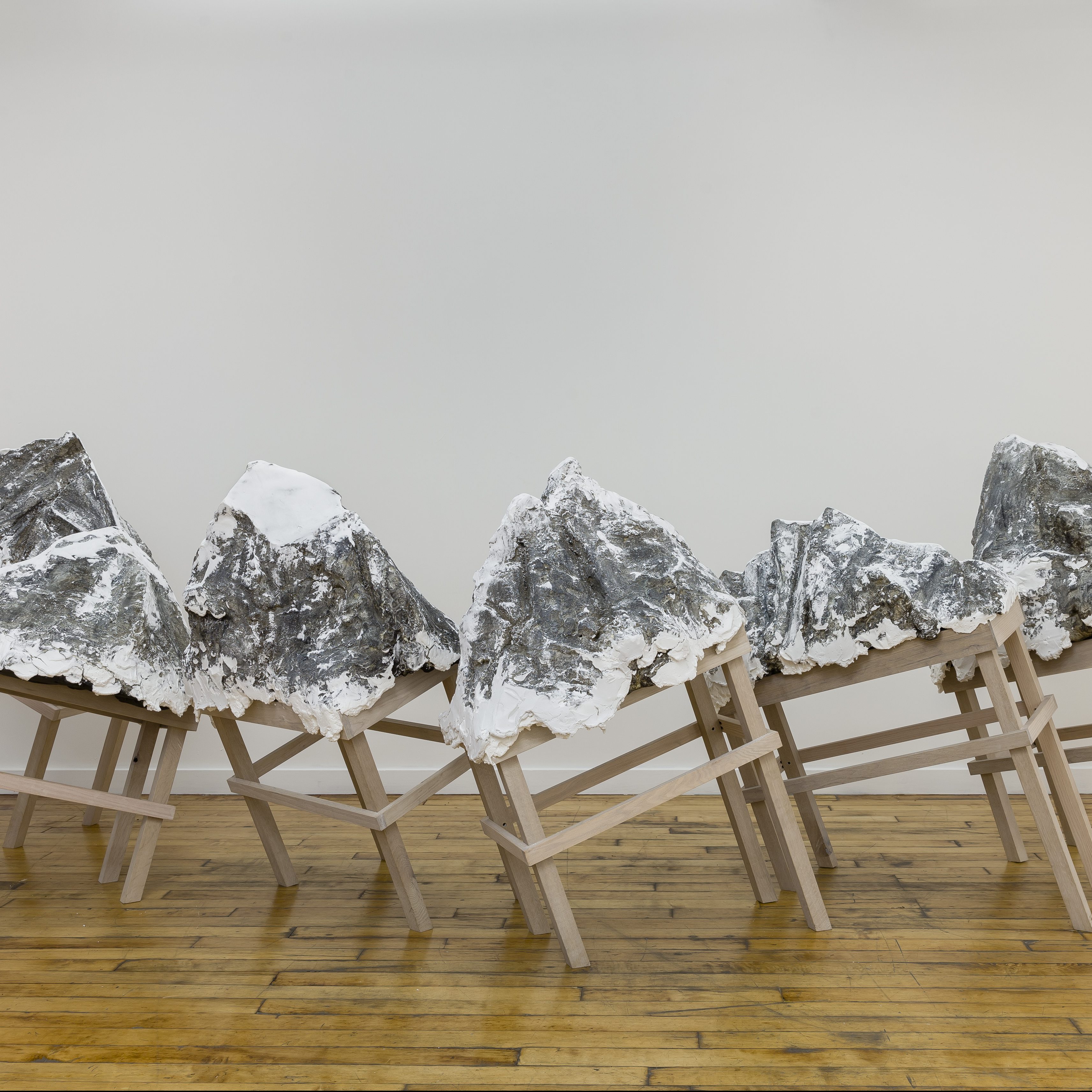 2015, Acrylic paint, vinyl paste, wood and foam armature, poplar with white stain.