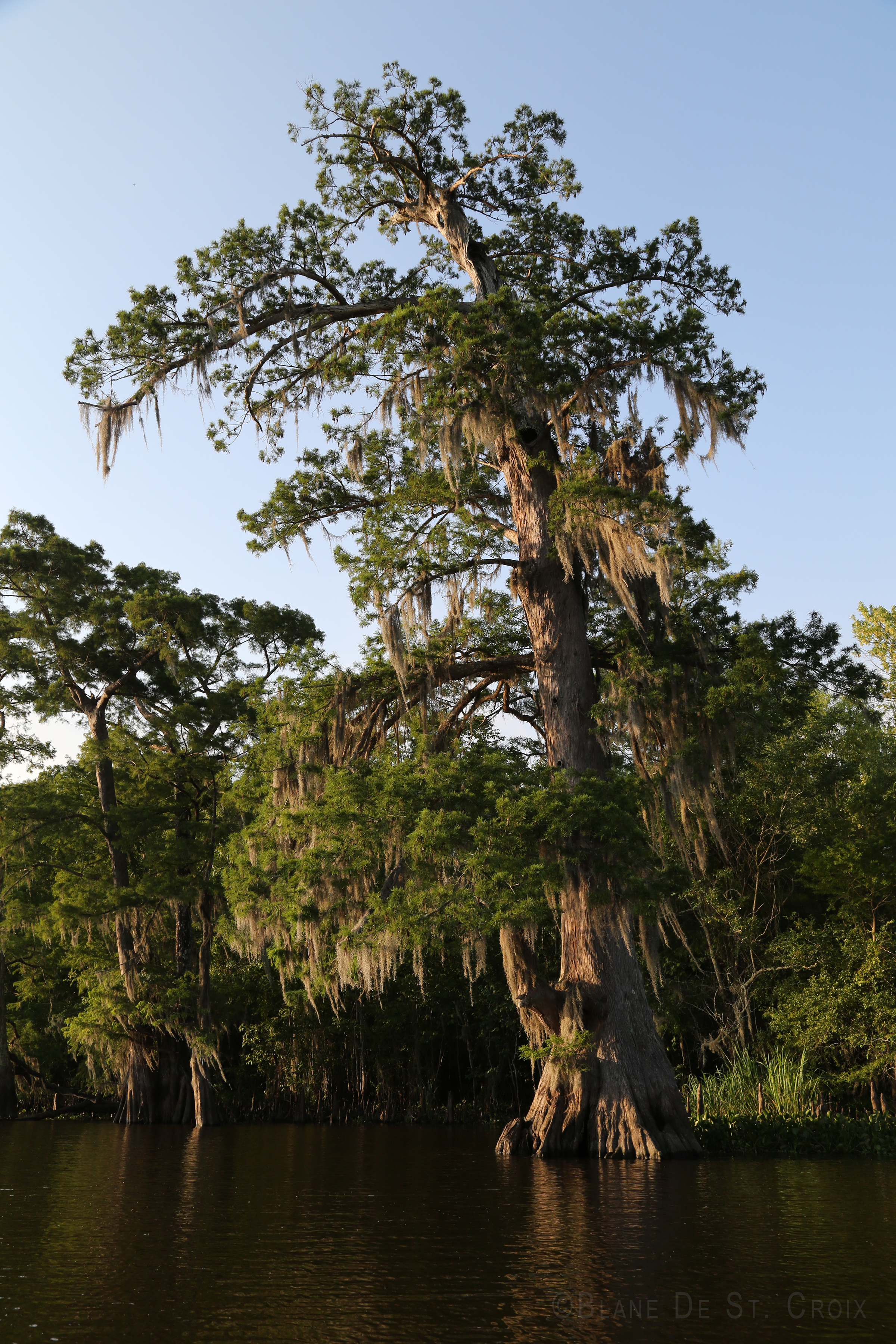 Large cypress at sunset.