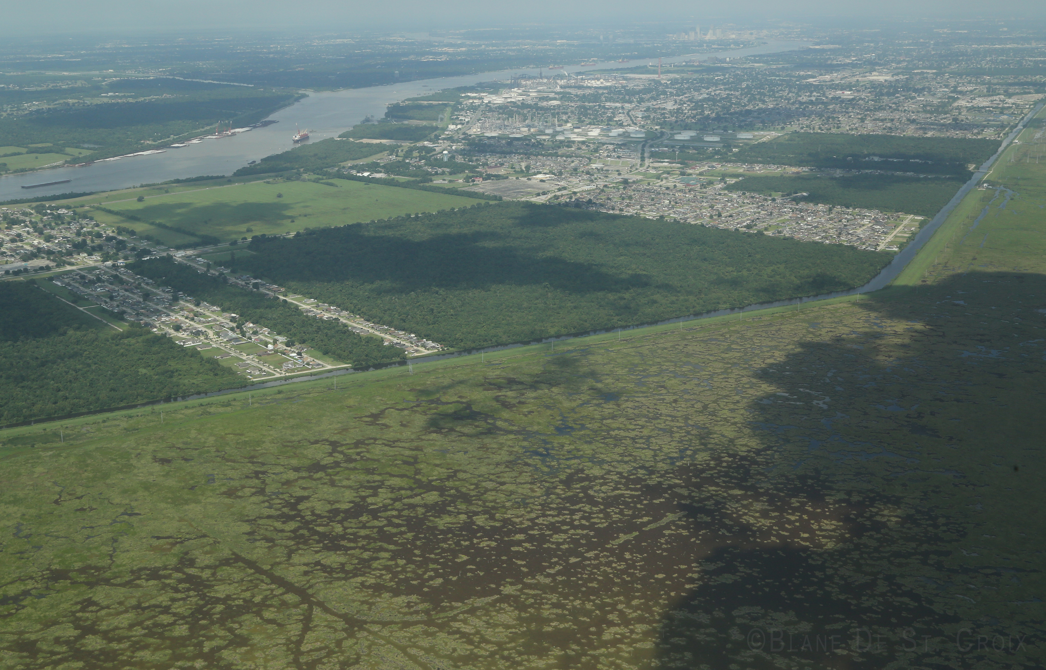 Approaching New Orleans up the Mississippi River.