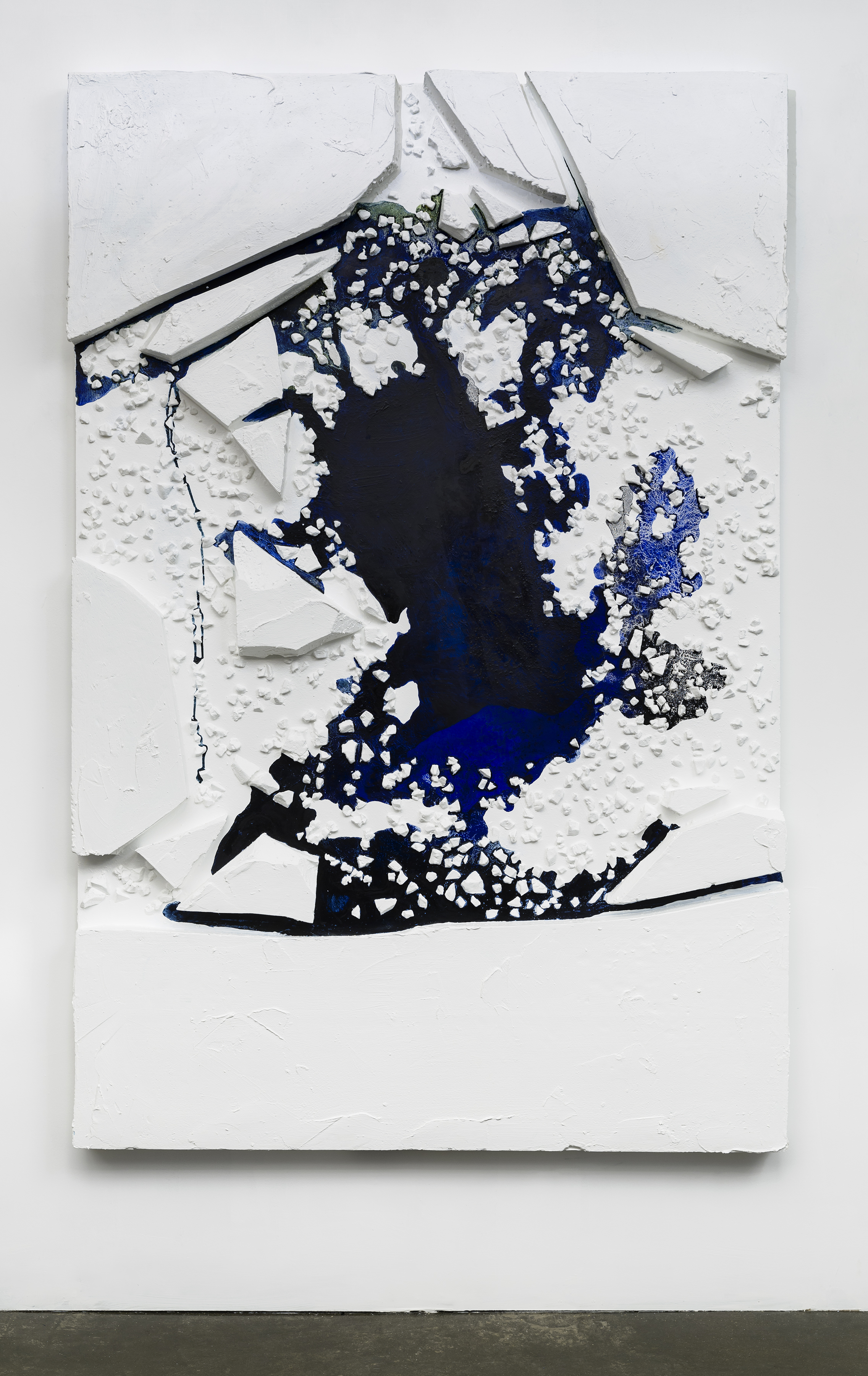 Arctic Fast Ice Pack, the artist begins with a blue-black ground like cold water devoid of reflected light, on top of which he carves sections of ice drifting apart and making the water underneath seem exposed. The artist’s relief painting also shows various forms of Arctic ice, such as multi-year ice, which stays frozen for consecutive seasons.