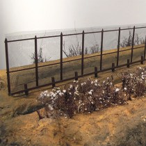 A miniature representation of the end of the federal fence line in Fort Hancock, TX. The sculpture is placed at eye level, forcing the viewer to look to the other side through the fence.