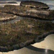 Based upon copious photo documentation of the Korean Demilitarized Zone, this sculpture depicts a wildlife sanctuary in one of the most dangerous border zones in the world.
