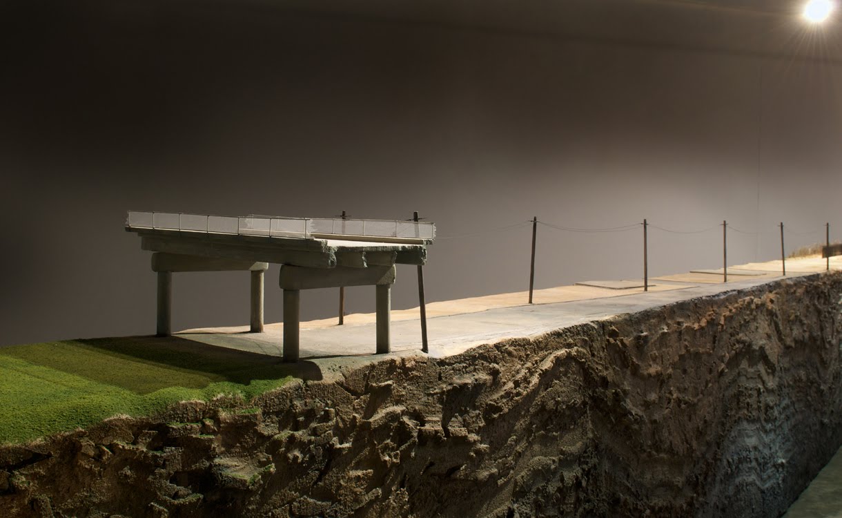 2010, wood, plywood, foam, plastic, paint, branches, dirt, and other natural materials, 80′ × 2.5′ × 7′