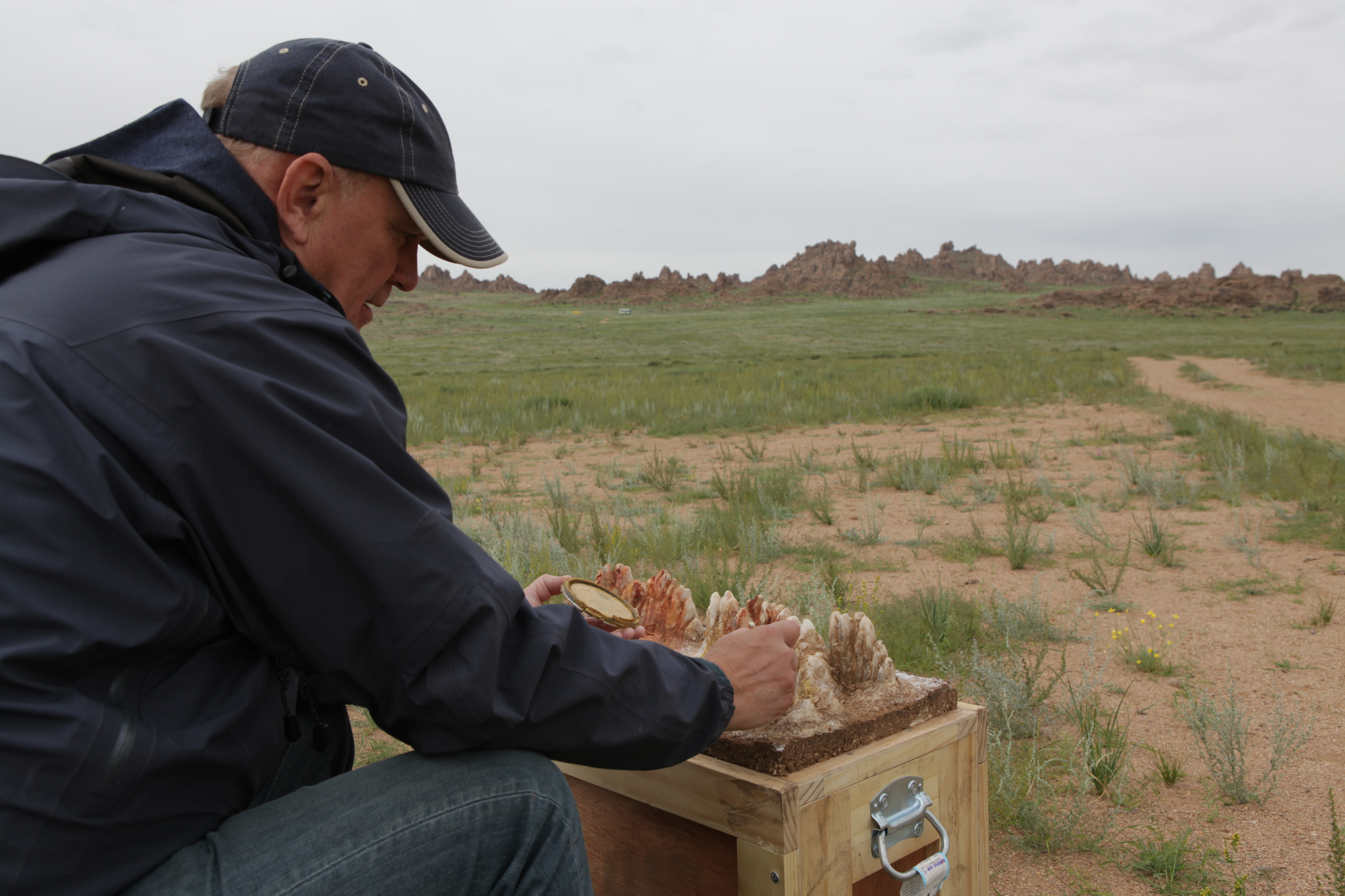 2012, wooden crate, acrylic paint, dirt and other natural materials from the Gobi desert, 24″ × 13″ × 15″